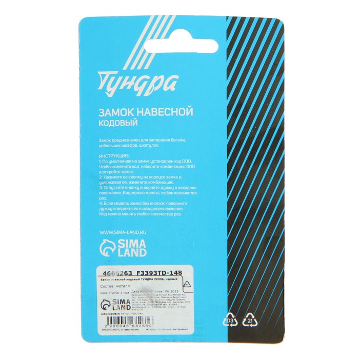 Замок навесной кодовый TUNDRA общего назначения с кодовым механизмом выполнен из высококачественного металла.