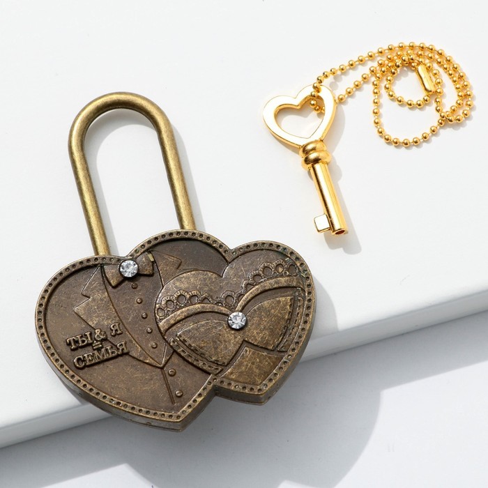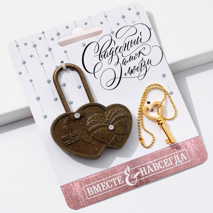 Замок для торжественной свадебной традиции - это символ любви. Навесной замок любви на свадьбе становится символом нерушимого союза, заключенного влюбленными в этот день. По традиции замок вешается на мост, загадывается желание о счастливой семейной жизни, а ключи от него выбрасываются в реку, через левое плечо. Это делается для того, чтобы никто никогда не смог открыть этот замок и нарушить клятву, данную влюбленными. Свадебный замок можно повесить на мост по традиции или на дерево в специалных парках или аллеях молодожен, которые есть во многих городах. Замок навесной свадебный имеет в комплекте ключик, замок закрывается и открывается. Традиция закрывать замок на свадьбу объединяет сердца мужа и жены навсегда. Свадебный декоративный замочек будет отлично смотреться на фотосессии и видео.