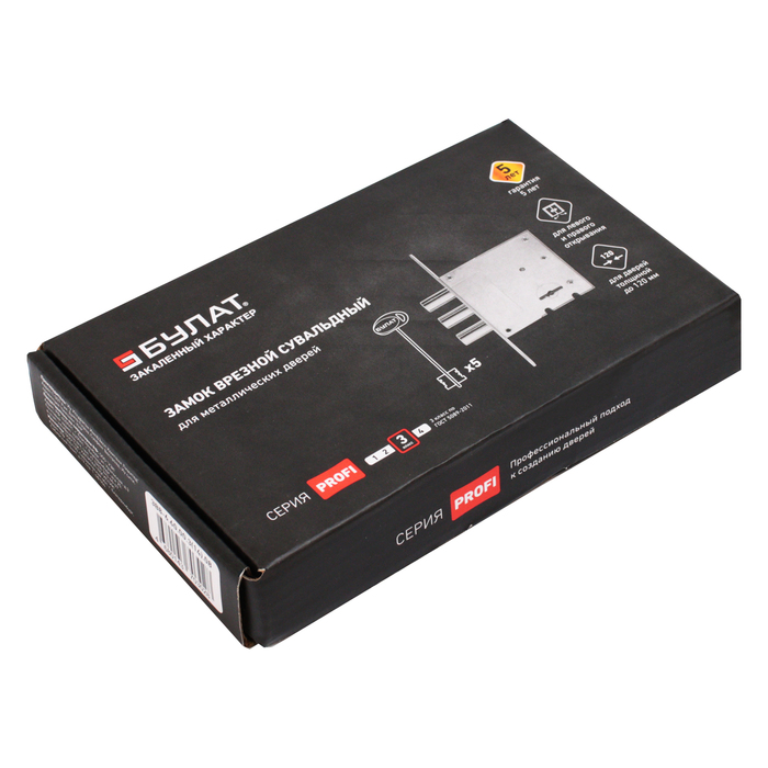 Замок врезной БУЛАТ ЗВ8-6.60.00.3(14).08, б/о, б/накл, 5 ключей, хром