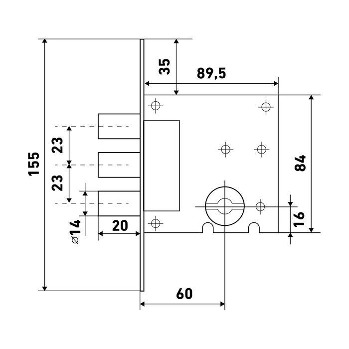 Замок врезной "СТАНДАРТ" ЗМ 0802 (3128) 20 мм квадрат