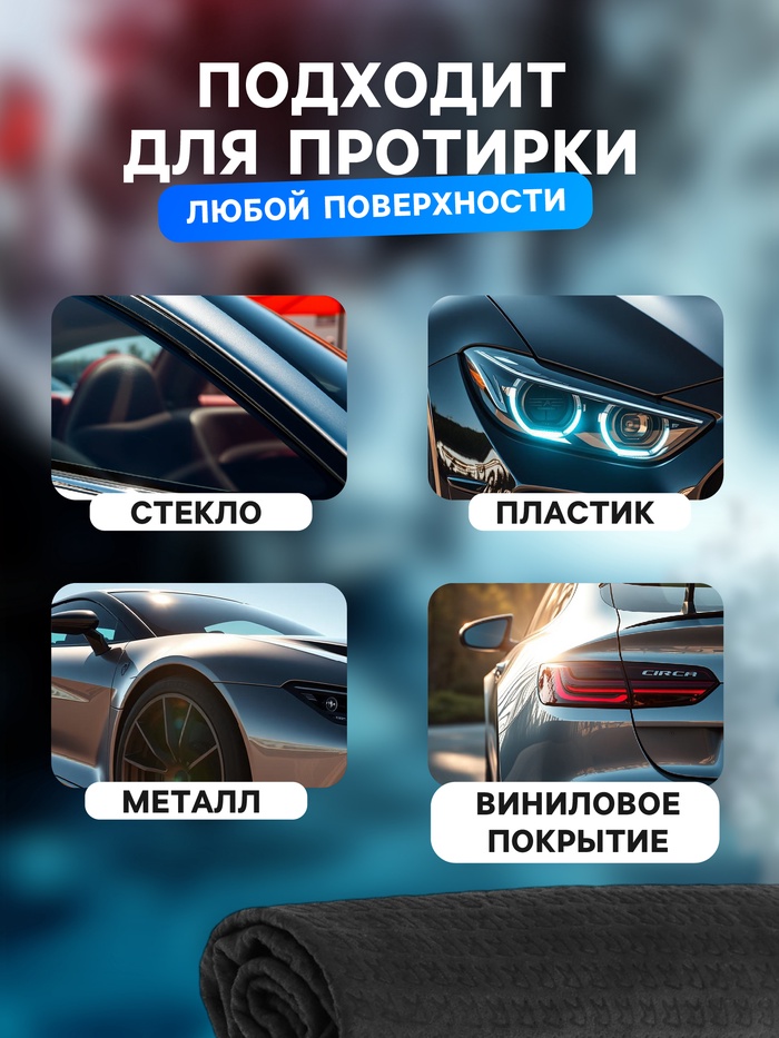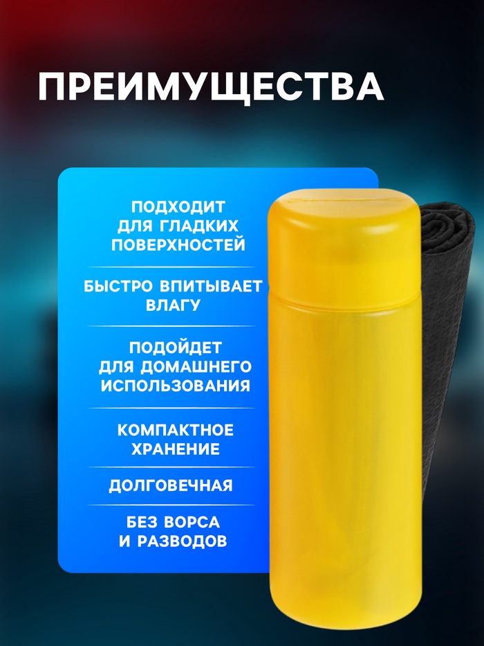 С помощью протирочной замши вы с лёгкостью очистите элементы автомобиля от пыли и грязи без применения химических средств. Она быстро впитает жидкость и не оставит разводов на лакокрасочном покрытии и стёклах. Мягкий качественный материал не допустит появления царапин.