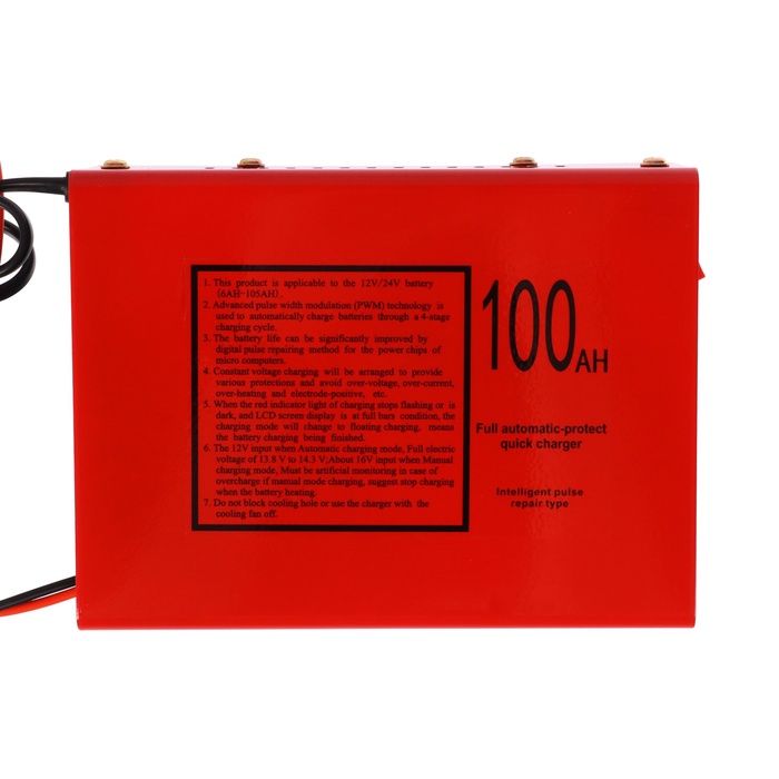 Универсальное зарядное устройство для аккумуляторов — незаменимый помощник для поддержания ваших транспортных средств в оптимальной работоспособности. Этот автоматический зарядник предназначен для работы с аккумуляторами напряжением 12-24 В и ёмкостью от 6 до 100 А/ч, что делает его идеальным для автомобилей, мотоциклов, и даже небольших лодок.