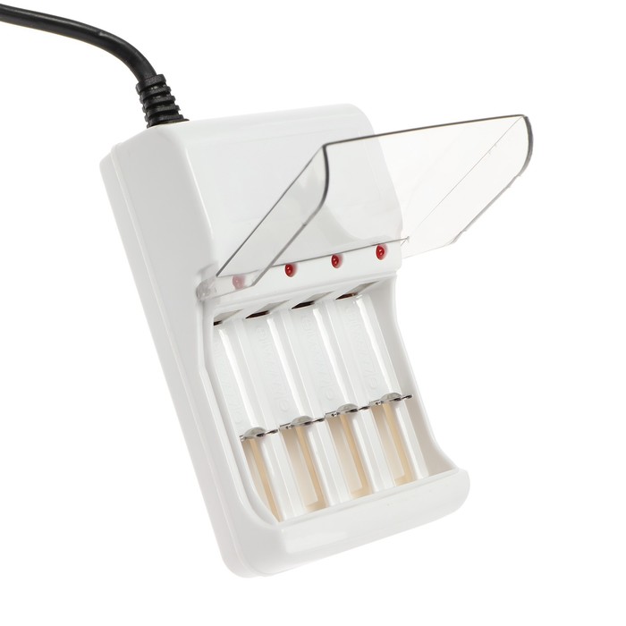 Зарядное устройство позволяет легко и быстро пополнить зяряд четырёх аккумуляторов типа АА и ААА. Берите гаджет с собой в путешествие, компактный размер экономит место. Провод длиной в 1 метр позволяет удобно расположить устройство рядом с розеткой. Быструю зарядку обеспечивает ток заряда в 180 мА.