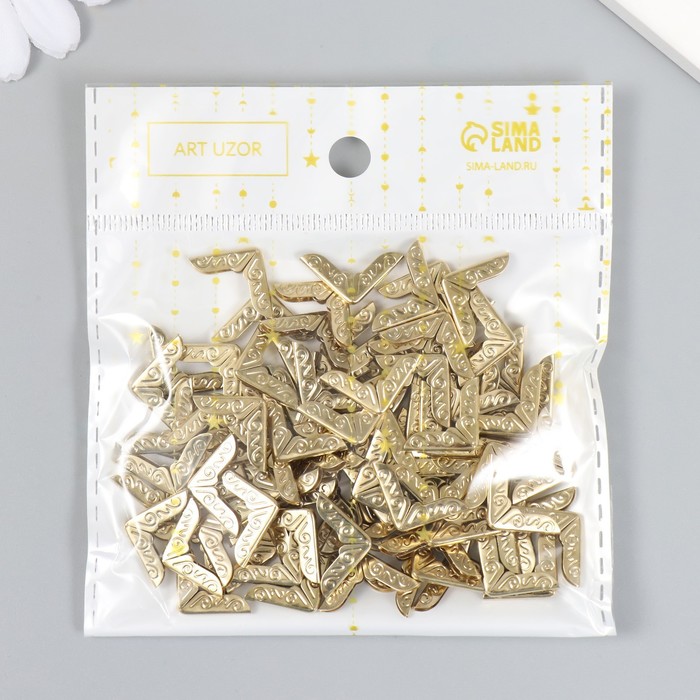 Защитный уголок для альбома «Завитки», набор 100 шт., металл под золото, 1.4×1.4 см
