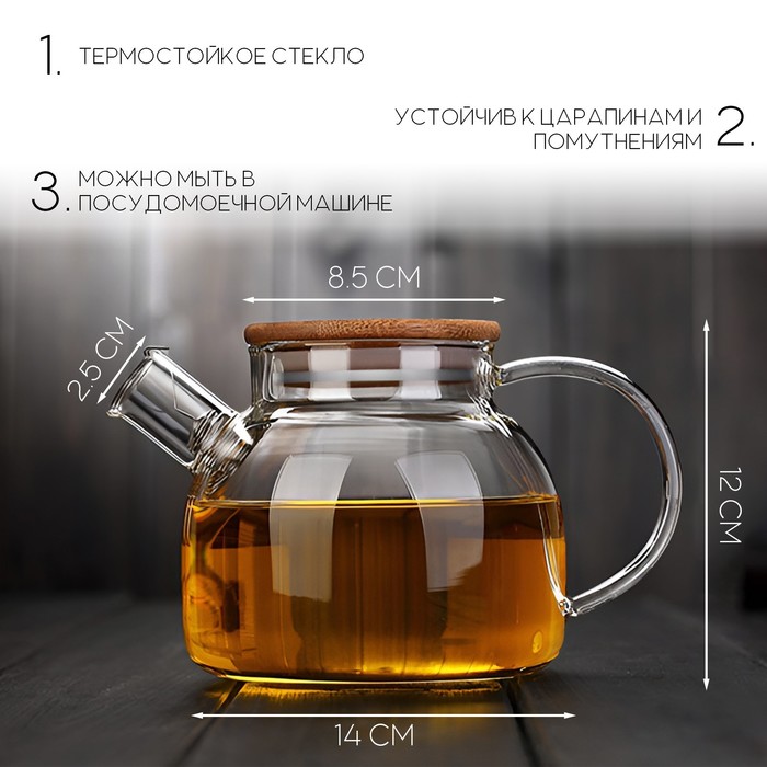 - Объем для большой порции: размер 900 мл подходит для заваривания достаточного количества чая, что удобно в повседневном использовании.