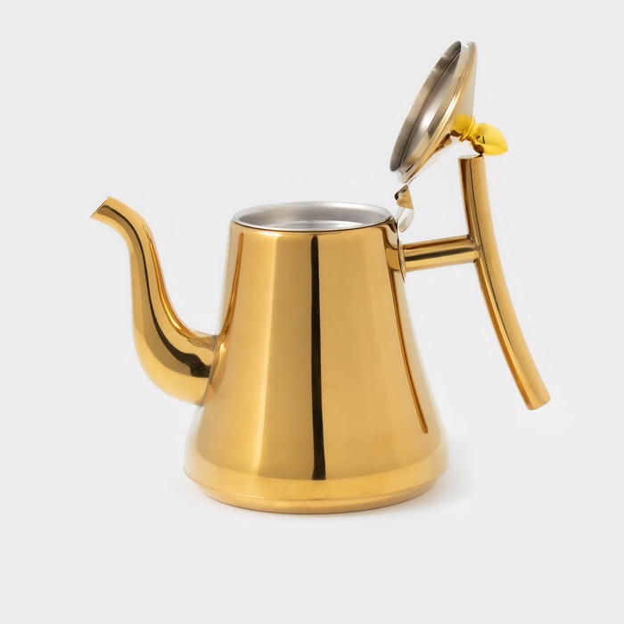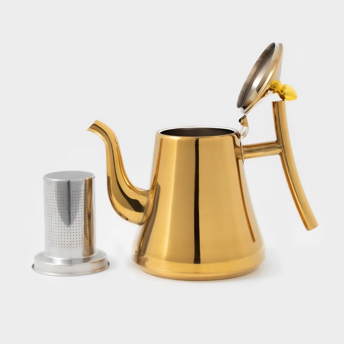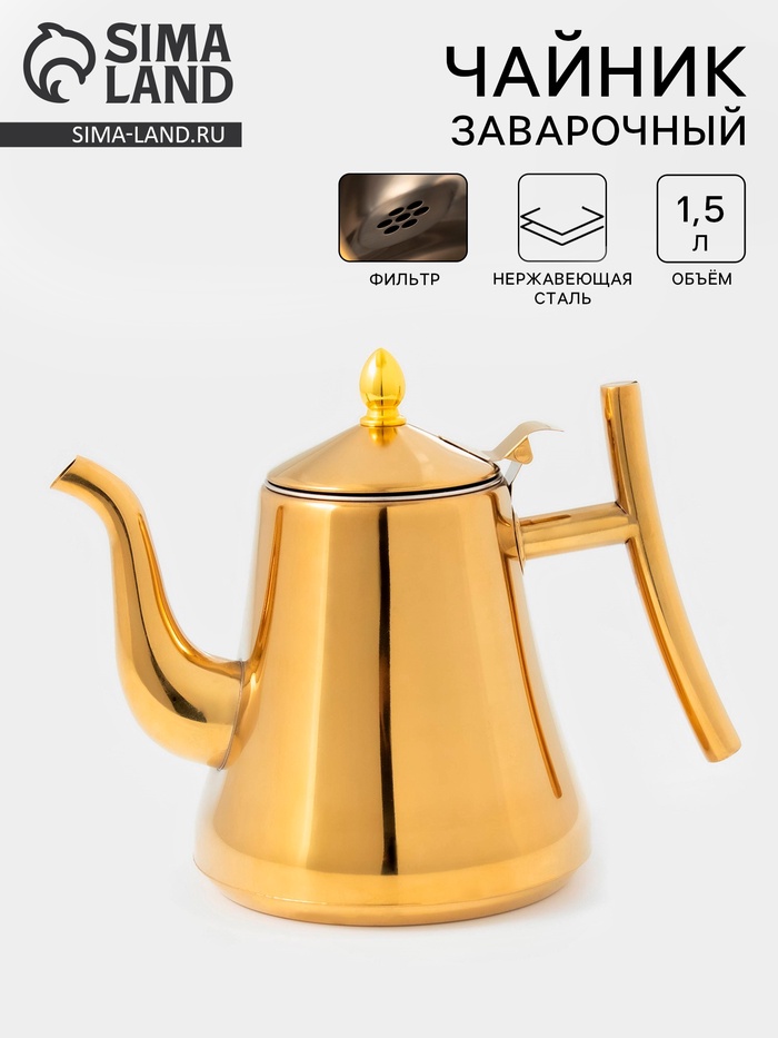 Заварочный чайник изготовлен из высококачественной нержавеющей стали, имеет металлическое сито.