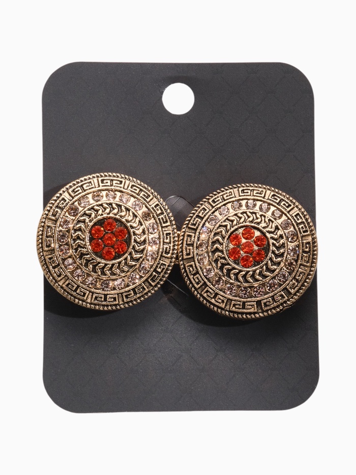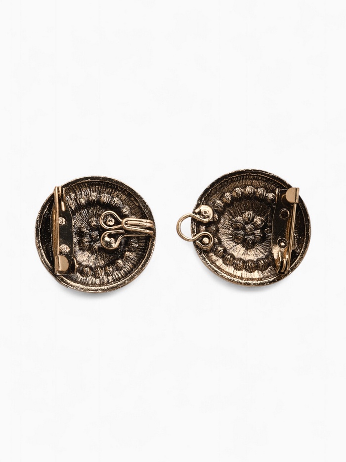 Зажим для кардигана «Круг» в орнаментах, цвет золото в чернёном золоте