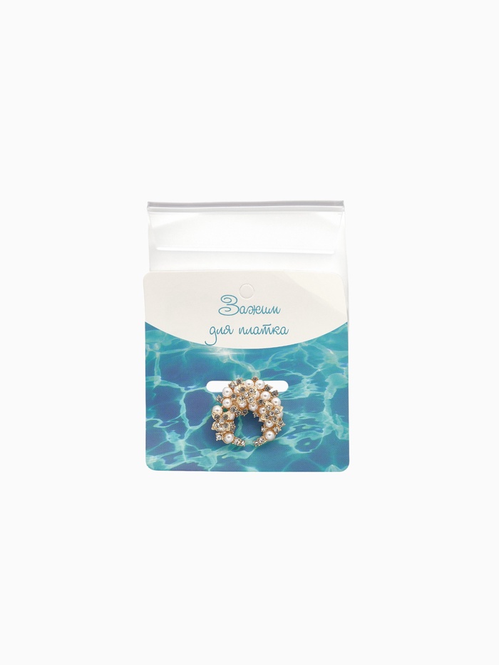 Изысканный зажим длиной 4 см воплощает утончённость и благородство благодаря сочетанию белого жемчуга и золотистого металлического основания. Аккуратные стразы и пластик создают эффект нежного сияния, придавая аксессуару лёгкость и изящество. Такой зажим станет идеальным дополнением к платкам и шарфам, подчёркивая женственность и стиль.