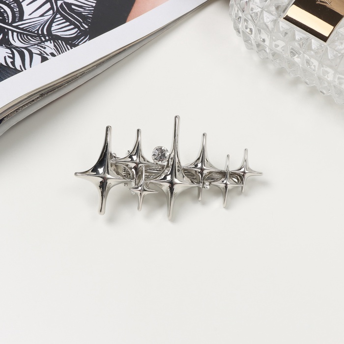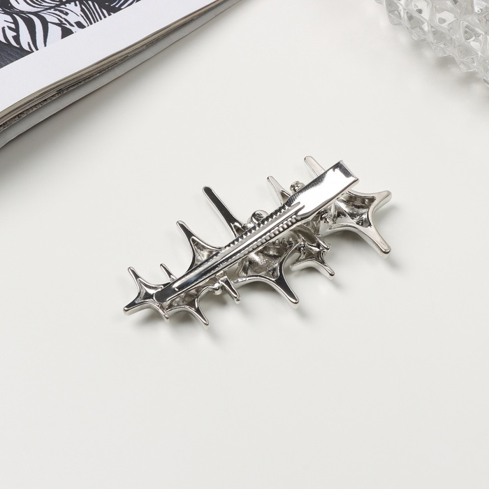 Серебряный зажим для волос станет идеальным аксессуаром для женщин, ценящих элегантность и качество. Этот изысканный металлический зажим, украшенный стеклянными деталями, комбинирует в себе практичность и утончённость, привнося нотку блеска в ваш облик. Он подойдёт для повседневного использования или станет украшением вечерней причёски, обеспечивая надежную фиксацию и стильный акцент в любом стиле.