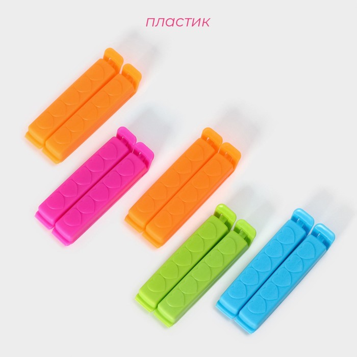 Зажимы для пакетов из прочного пластика предназначены для герметичного закрывания, предотвращают от попадания воздуха и влаги, что помогает дольше сохранить свежесть продуктов, прочно закрывают пакет, поэтому его содержимое не рассыплется.