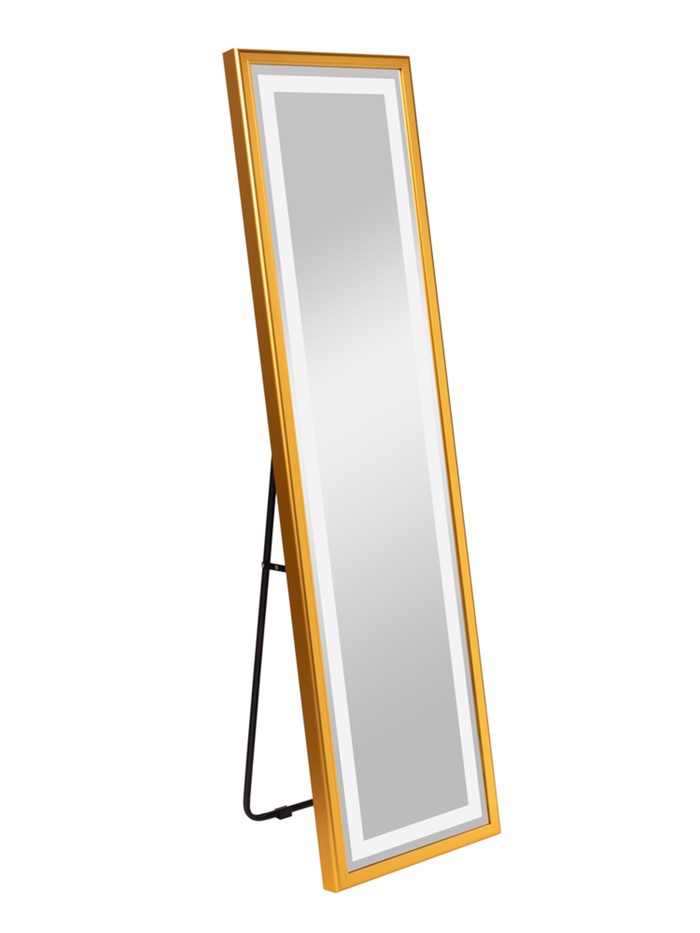 Зеркало напольное с LED-подсветкой сенсорное, в раме из алюминия, 150х40см, золотой