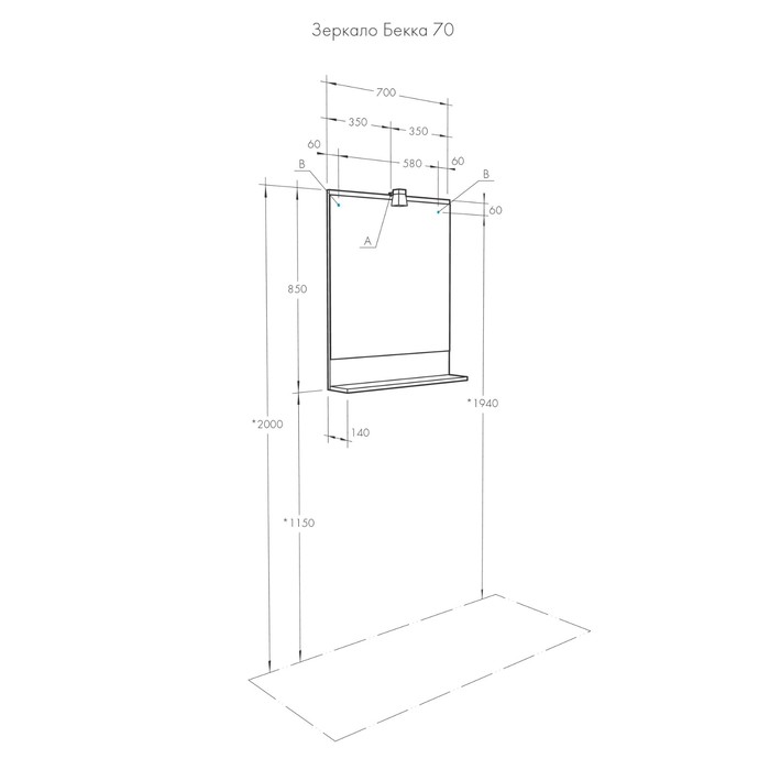 Зеркало Бекка PRO — универсальная практичная модель, идеальное решение для компактных ванных комнат. При изготовлении зеркала используется зеркальное полотно со специальным влагостойким покрытием и влагостойкая ЛДСП в цвете дуб сомерсет. Зеркало оснащено удобной нижней полкой в цвете дуб сомерсет, позволяющей разместить предметы декора и гигиенические принадлежности, которые всегда должны быть под рукой. В верхней части зеркального полотна установлен галогеновый, обеспечивающий ровное и красивое свечение.