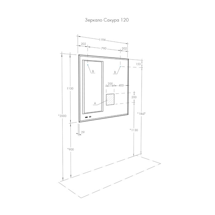 LED-подсветка, выполненная в форме рамки в левой части зеркала, идеально сочетается с лаконичным дизайном тумбы и служит функциональным элементом освещения, а используемые светодиоды, экономят до 50% потребляемой мощности и служат в 2 раза дольше люминесцентных ламп. Увеличенная высота зеркала 110 см создает в ванной комнате визуальный эффект расширения пространства.