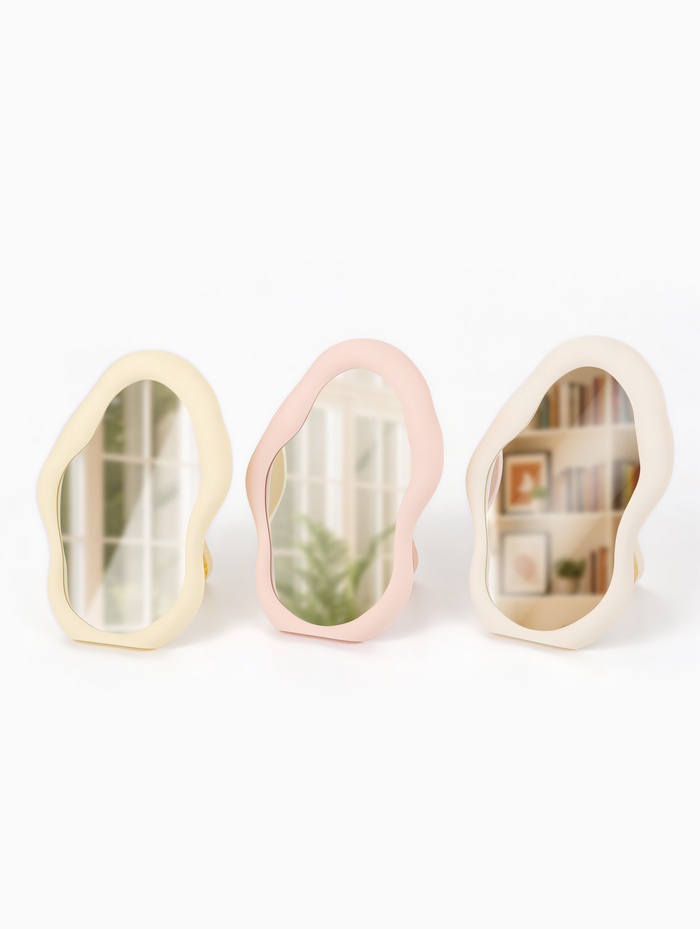Дизайн зеркала выполнен в форме волны, что придает ему не только уникальный вид, но и создает атмосферу легкости и свежести. Белый пластиковый корпус делает это зеркало ярким акцентом в интерьере, добавляя нотку игривости и элегантности. Такую модель оценят как молодые модницы, так и все, кто ценит красивые вещи в быту.