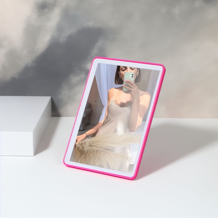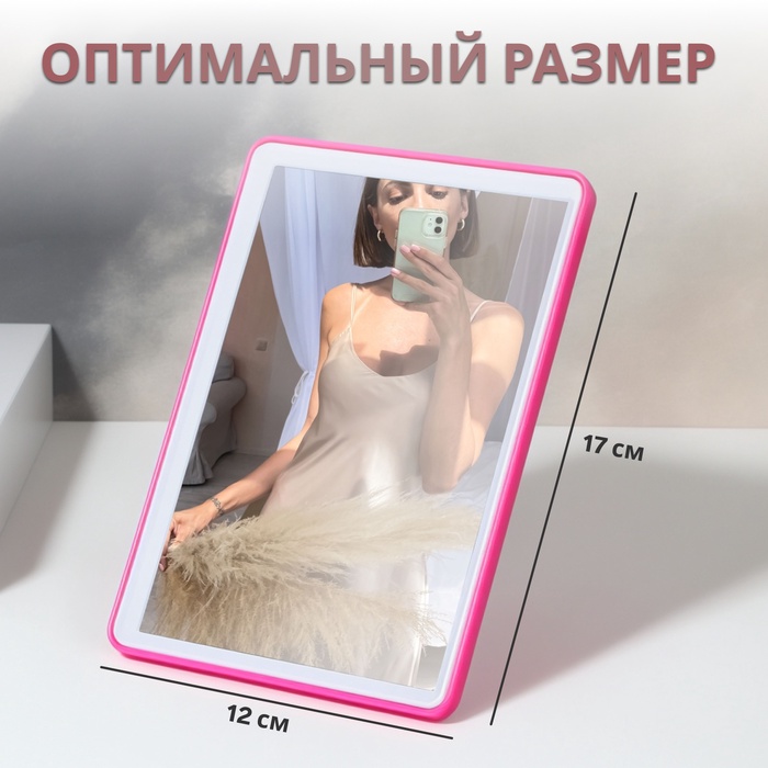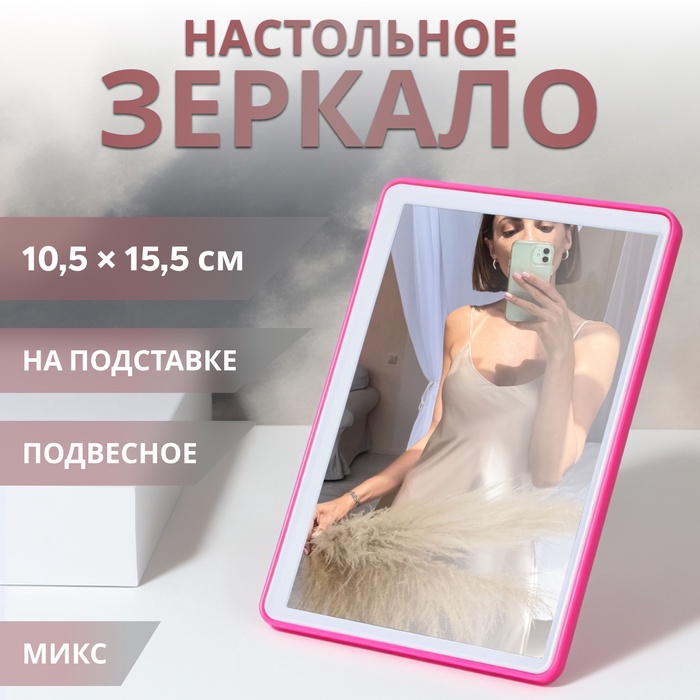 Настольное зеркало с разноцветной рамой и прямоугольной формой станет практичным дополнением любого интерьера. Зеркальная поверхность размером 10,5×15,5 см обеспечивает чёткое отражение без увеличения, что удобно для ежедневного использования в спальне, ванной, прихожей или гостиной.