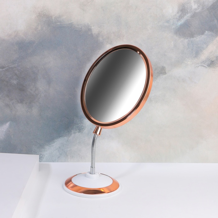 Зеркало настольное, с увеличением х2, двустороннее, на гибкой ножке, 14.5×30.5 см, (14×17 см), цвет медный