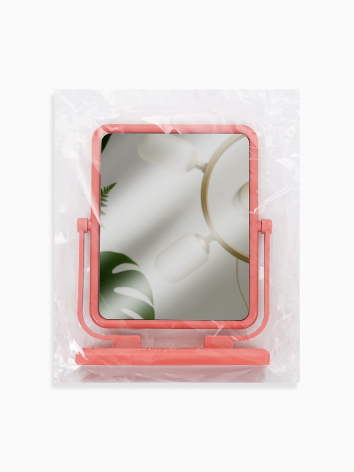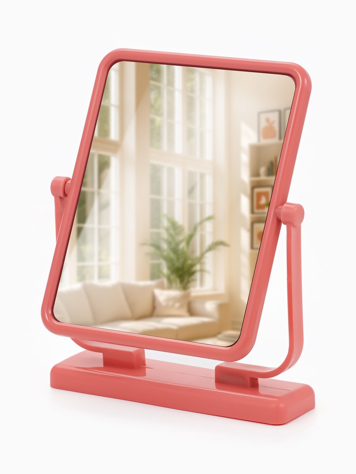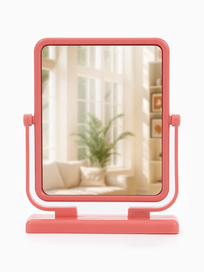 Двухстороннее настольное зеркало с прямоугольной розовой рамой и зеркальной поверхностью 9,5×12 см удобно разместить в спальне, ванной или гостиной. Поворотная конструкция обеспечивает лёгкое переключение между сторонами без увеличения, позволяя контролировать образ с разных ракурсов. Пластиковый корпус делает изделие лёгким и практичным для ежедневного использования.