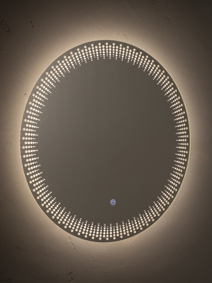 Зеркало с LED-подсветкой сенсорное, круглое с гравировкой, d=60 см, матовый
