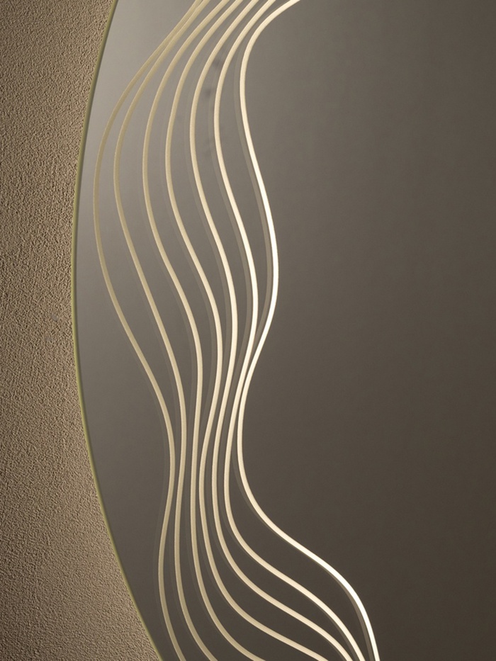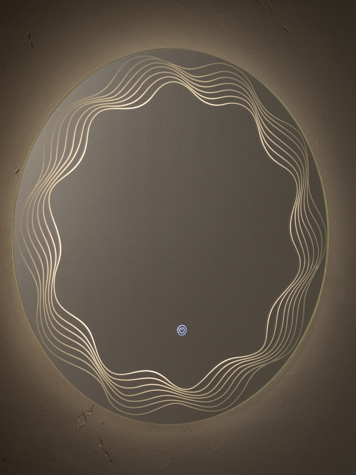 Зеркало с LED-подсветкой сенсорное, круглое с гравировкой, d=60 см "Волна"