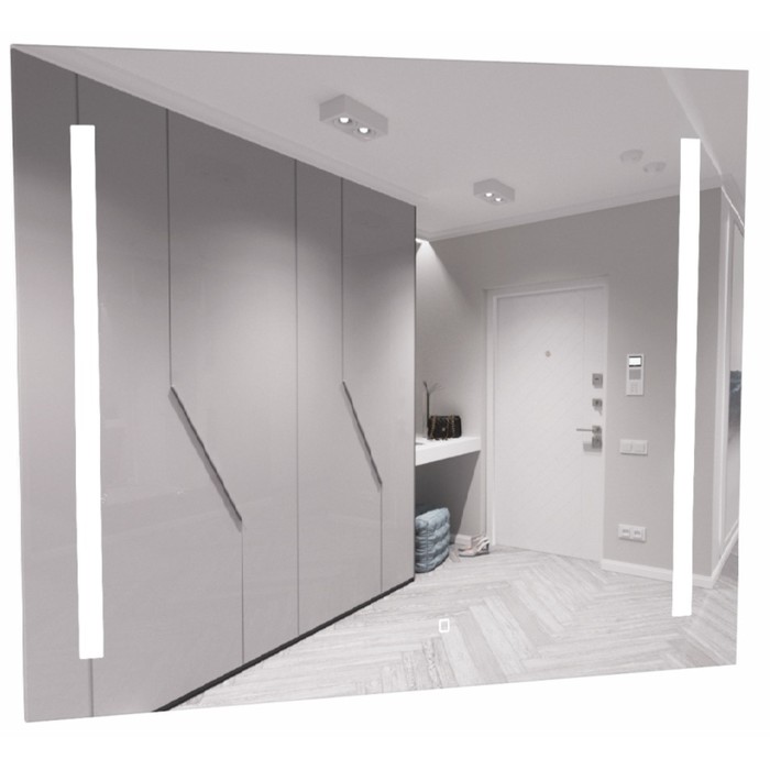Зеркало оснащено подсветкой, которая создает уютную атмосферу в ванной комнате. Выключатель подсветки сенсорный, что позволяет регулировать яркость света.