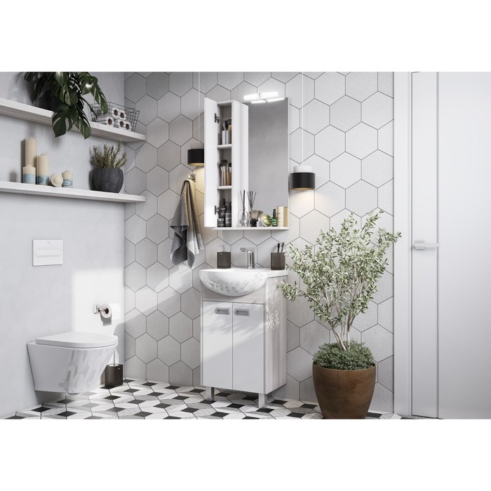 Удобный зеркальный шкаф Бекка PRO 50 от AQUATON отличается компактными размерами и при этом позволяет разместить все мелочи, которые должны быть под рукой. Стильная лаконичная модель оснащена нижней полкой и подсветкой. Корпус в эффектной декоративной отделке «дуб сомерсет» и фасад, покрытый белой глянцевой краской, выполнены из влагостойкой ЛДСП. При изготовлении зеркального шкафа используется зеркальное полотно со специальным влагостойким покрытием.