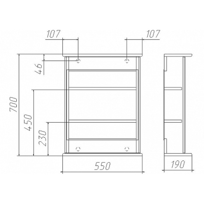 Шкаф-зеркало Милана 55 имеет одну дверцу и две полки внутри. На дверце установлены петли с доводчиком, что обеспечивает плавное и бесшумное закрывание. Сторона открытия дверцы определяется самостоятельно при монтаже.