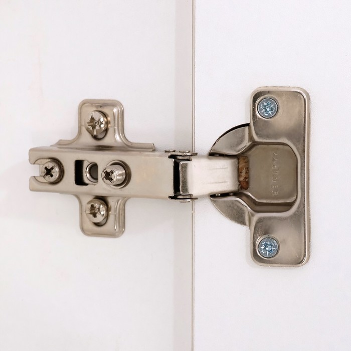 Корпус выполнен из влагостойкой ЛДСП 16 мм, кромка — из ПВХ 0,45 мм. Фасады сделаны из МДФ толщиной 16 мм и облицованы глянцевой плёнкой ПВХ белого цвета – она защищает мебель от повышенной влажности. Применение мебельной фурнитуры немецкого производства обеспечивает плавное закрывание ящиков и бесшумный ход дверей.
