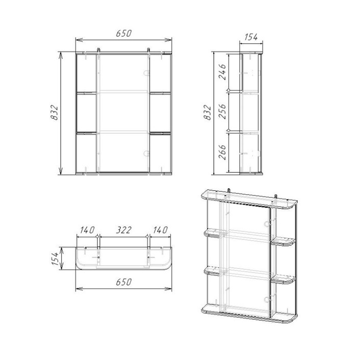 - Размеры: 650х154х832 мм.