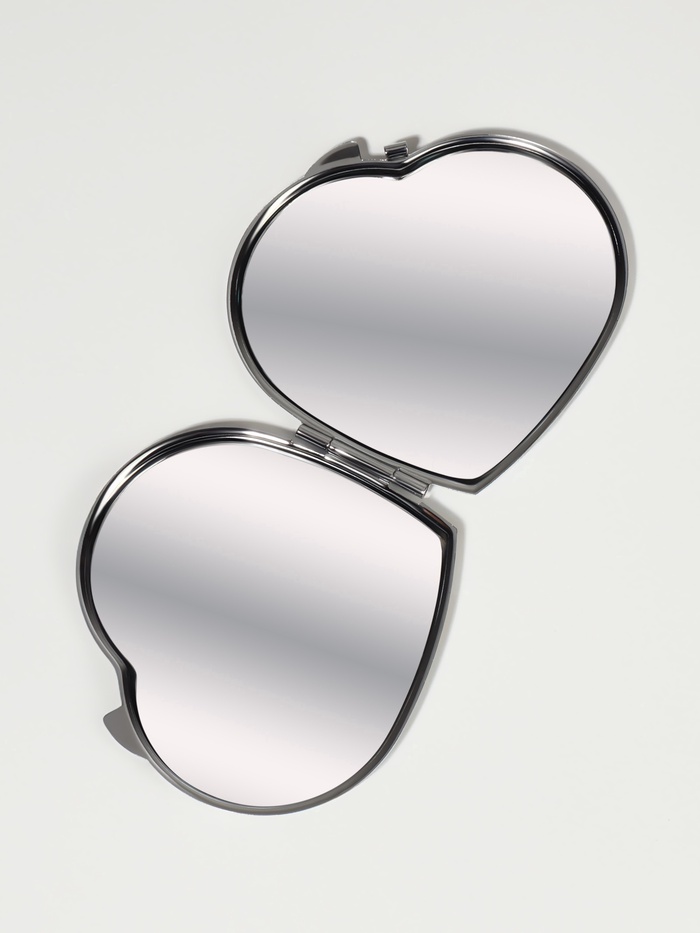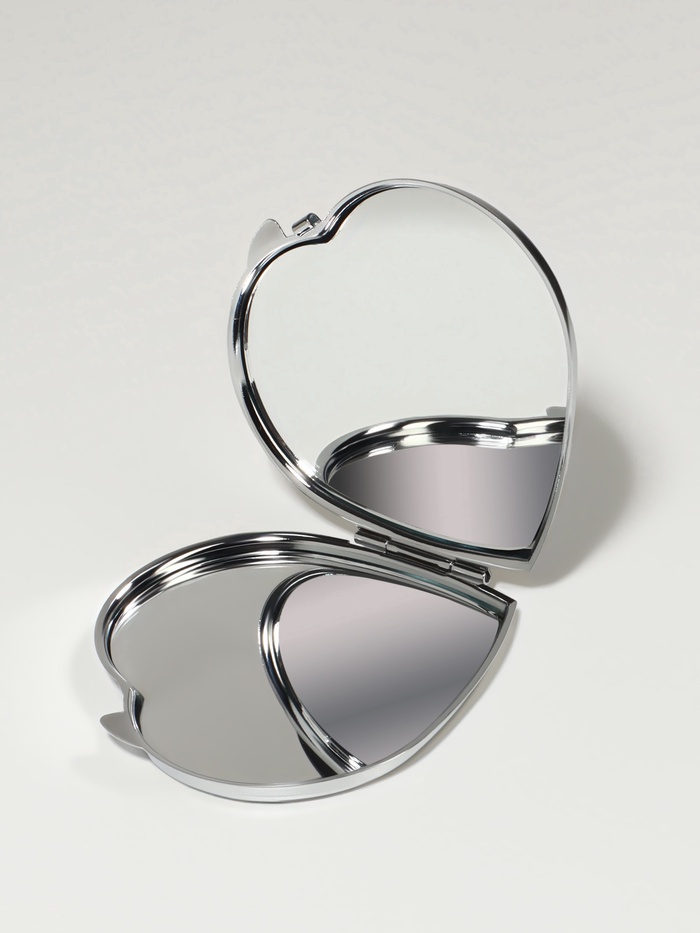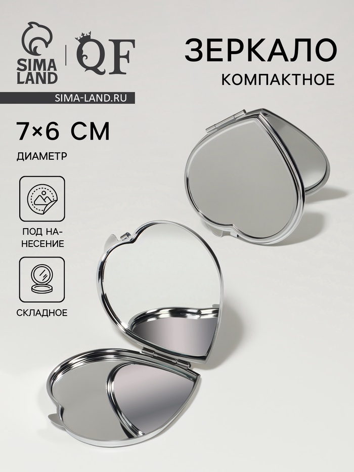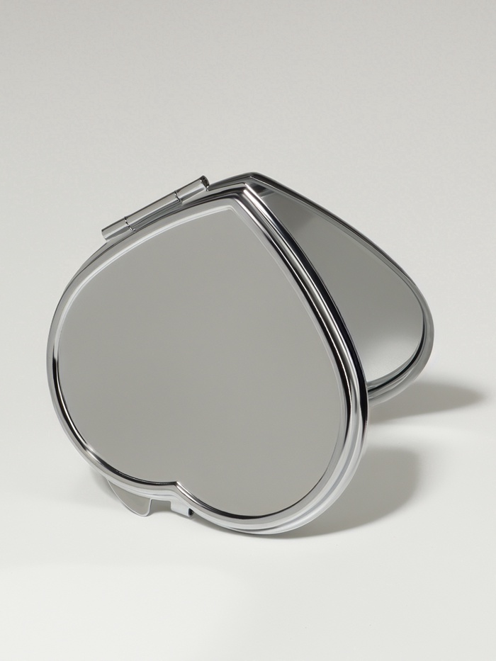 Складное карманное зеркало в форме сердца с серебристым металлическим корпусом — удобный и стильный аксессуар для ежедневного ухода и быстрого освежения образа вне дома. Его компактные размеры 7×6 см делают устройство лёгким для переноски в сумочке или косметичке, а надёжный металлический корпус обеспечивает долговечность и защиту зеркальной поверхности от повреждений. Двойная зеркальная панель раскрывается, открывая две ровные поверхности без увеличения, что помогает быстро проверить макияж или прическу в любой ситуации.