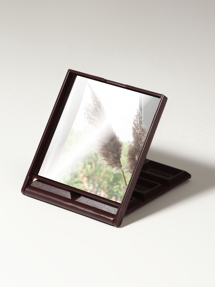 Компактное косметическое зеркало с необычным дизайном в виде шоколадки, можно использовать как карманное, дорожное, а также как настольное зеркало. Оно просто необходимо людям, использующим линзы на постоянной основе, чтобы при необходимости сразу устранить возникшую проблему. Благодаря складному механизму зеркальная поверхность не повредится. Такое зеркало станет идеальным подарком для ребёнка или девушки.