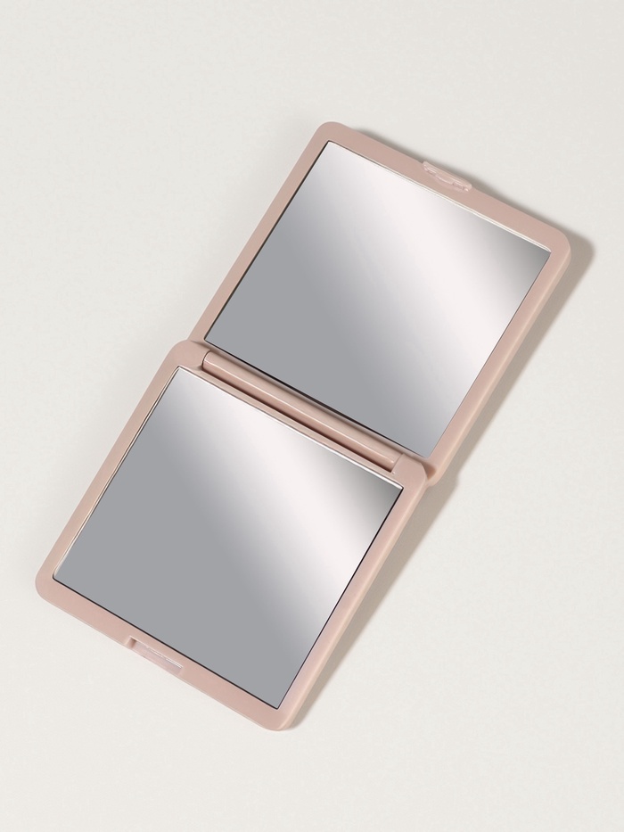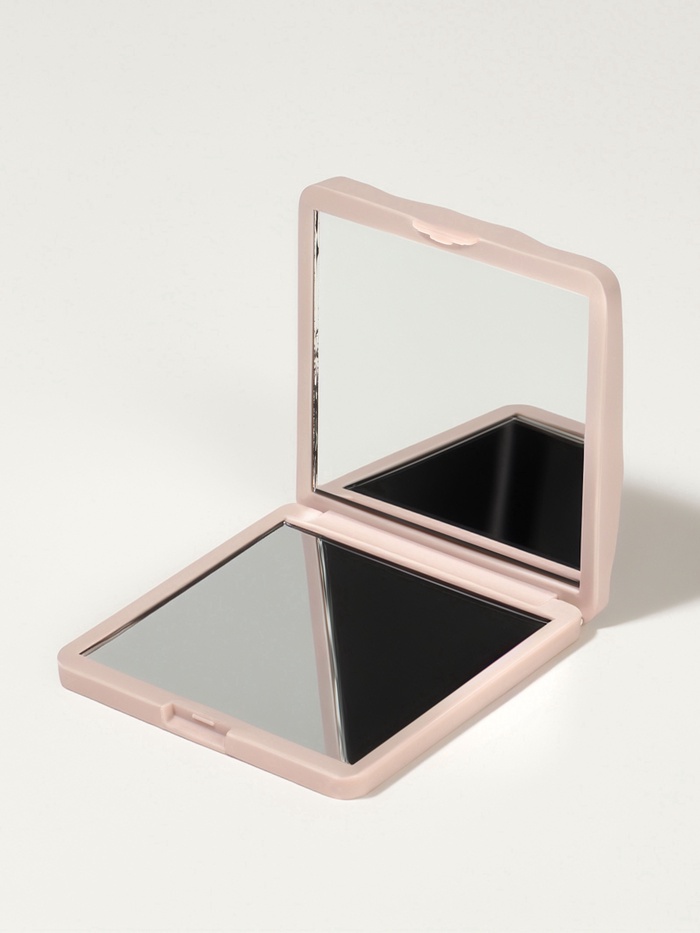 Бежевое складное зеркало с увеличением х2 сочетает компактность и практичность для повседневного контроля внешнего вида. Квадратная форма размером 7×7 см удобно помещается в сумочке или косметичке, а пластиковый корпус обеспечивает лёгкость и надёжность при использовании. Два зеркала помогают быстро оценить общий образ и проработать мелкие детали.