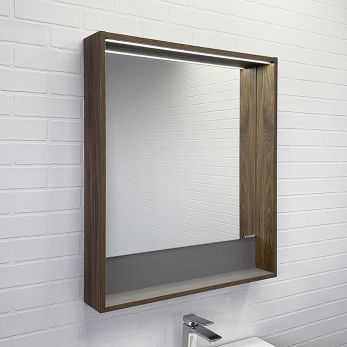 Класс защиты IP44 означает, что зеркало можно использовать внутри влажных помещений типа санузла или ванной: они защищены от попадания случайных брызг и капель воды и от проникновения твердых предметов. В зеркале в качестве светильника используется LED лента, которая характеризуется более длительным сроком службы. LED лента крепится на металлизированную кромку, увеличивает долговечность изделия, защищает от перегрева. Зеркало крепится на подложку из влагостойкого ЛДСП и закрыто пластиковой крышкой, стык крышки и зеркального полотна дополнительно защищен резиновым уплотнителем, исключающим попадание пыли и влаги.