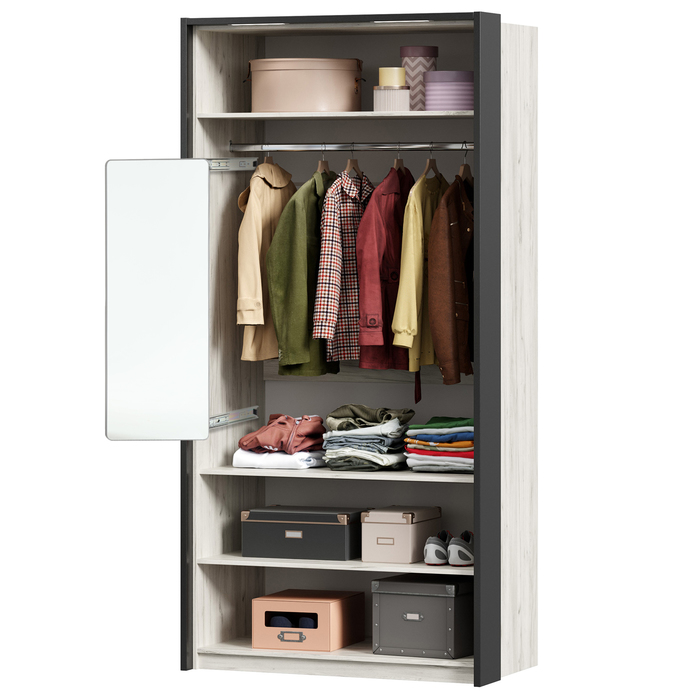 Зеркало выдвижное в шкаф на рельсах, 90×35 см, белое