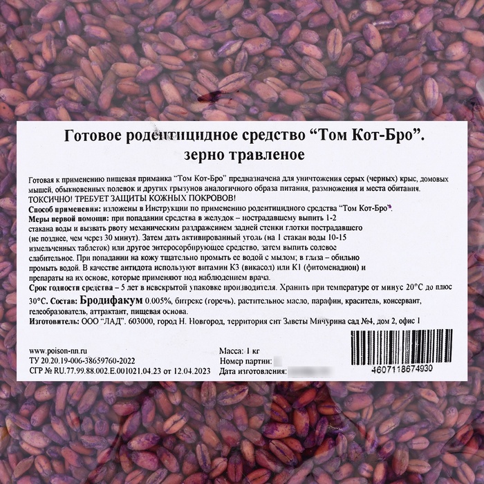 С помощью зерновой приманки вы сможете быстро и эффективно устранить проблему с грызунами, создавая безопасные условия для проживания и работы. «ТОМ КОТ БРО» — ваш надежный выбор в борьбе с крысами и мышами.