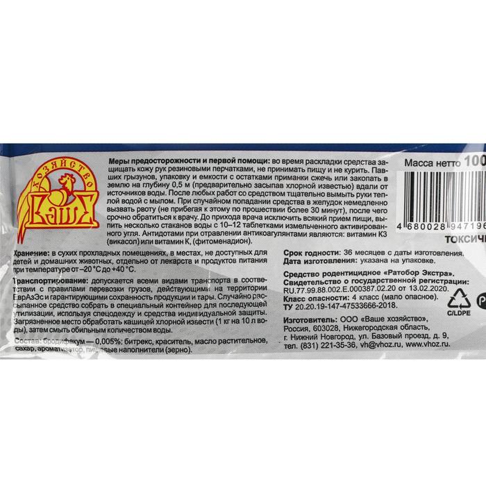 «Ратобор ЭКСТРА» упакован в пакеты весом 100 и 200 г, последние – с удобным «замком» zip-lock (застёжкой-молнией), а также в коробки по 200 г.