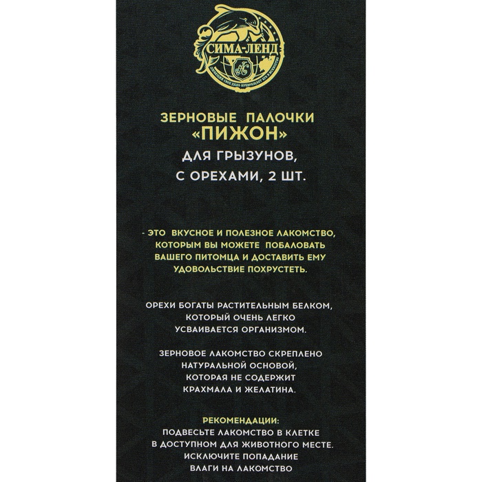 Зерновые палочки "Пижон" для грызунов, с орехами - это вкусное и полезное лакомство, которым вы можете побаловать вашего питомца и доставить ему удовольствие похрустеть.