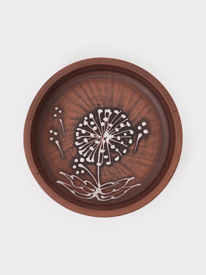 Жаровня «Одуванчик» из красной глины — это компактная и удобная посуда для приготовления и подачи блюд, которая сочетает в себе натуральность, практичность и декоративную выразительность. Изящный растительный узор придает изделию особый шарм и делает его стильным элементом сервировки.