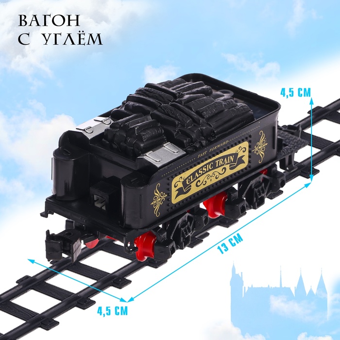 - Вагон с углем: 13 × 4,5 × 4,5 см.