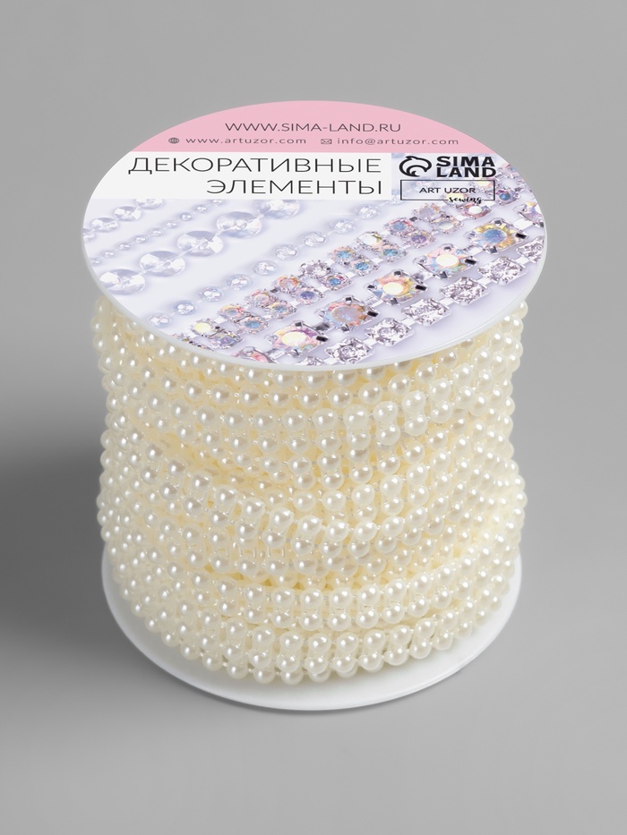 - Вид — жемчуг, подходит для создания гирлянд, отделки одежды, свадебных аксессуаров и интерьерного декора.