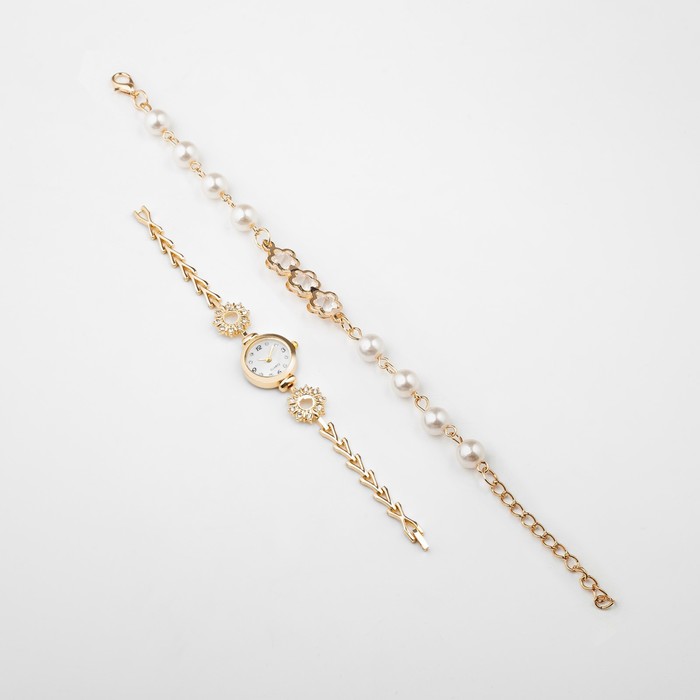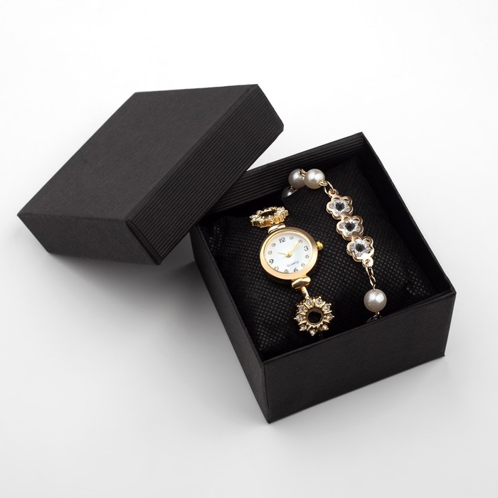 Набор ориганальных украшений для романтичных и креативных натур. Браслет часов выполнен в нестандартной форме, с обеих сторон от цифербалата расположены сердца, как символ объединяющей любви. Символично то, что наше время объединено в любовь с обеих сторон.