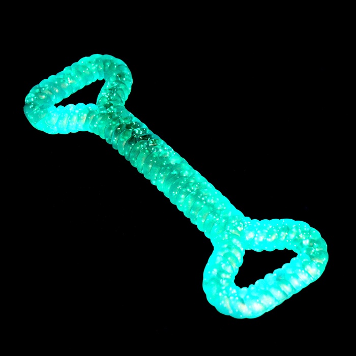 Светящийся эффект: Игрушка обладает уникальным свойством светиться в темноте, что делает её отличным выбором для вечерних прогулок и игр на улице в темное время суток. Это повышает видимость и позволяет владельцам легко находить игрушку, а собакам – не терять её.
