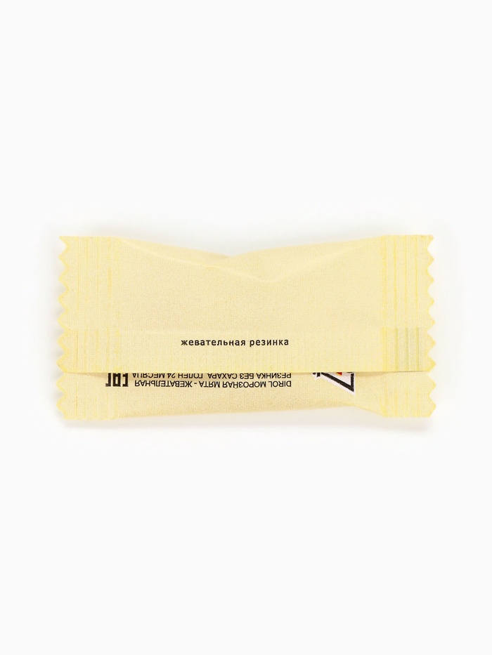 Состав: подсластители (сорбит, мальтит, мальтитный сироп, сукралоза, ацесульфам калия), резиновая основа, ароматизаторы, загуститель (Е414), влагоудерживающий агент (Е422), эмульгаторы (лецитин подсолнечный), краситель (Е171), глазирователь (Е903), антиокислитель (Е321).