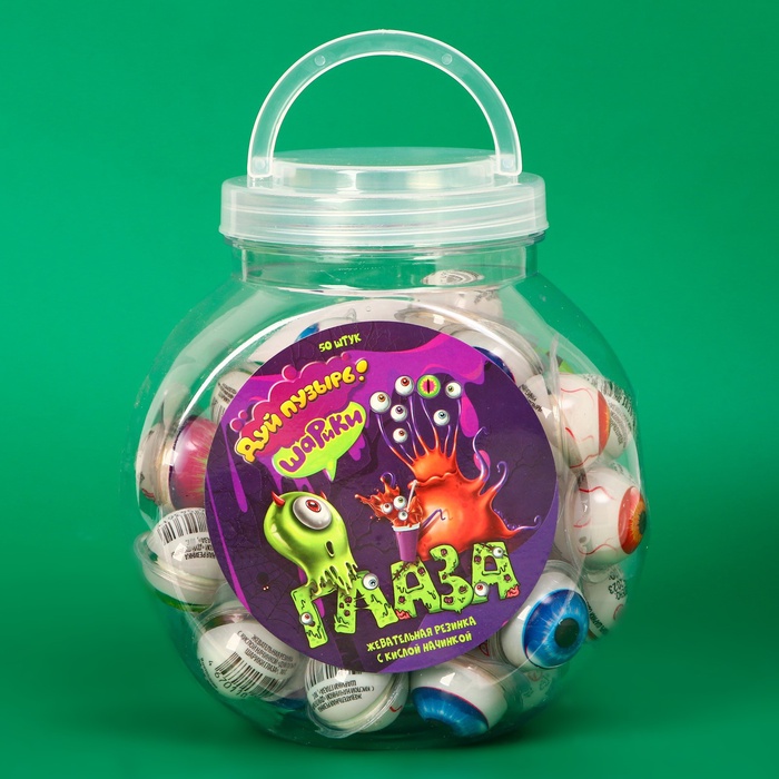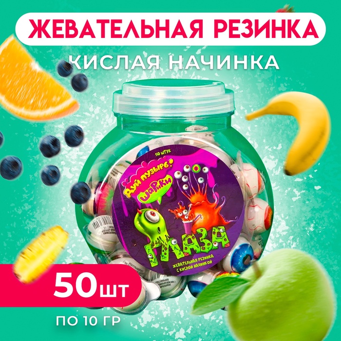Жевательные шарики с кислой начинкой — набор из 50 штук с индивидуальной упаковкой и весом 500 г.