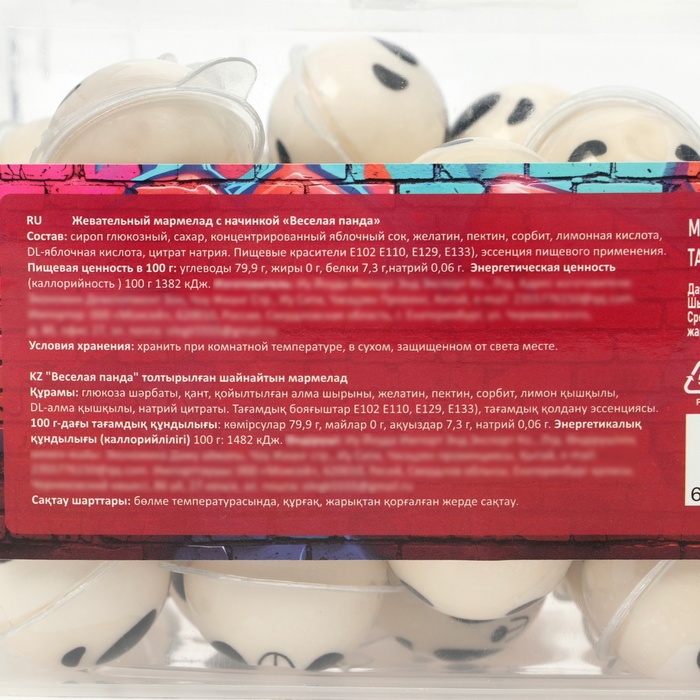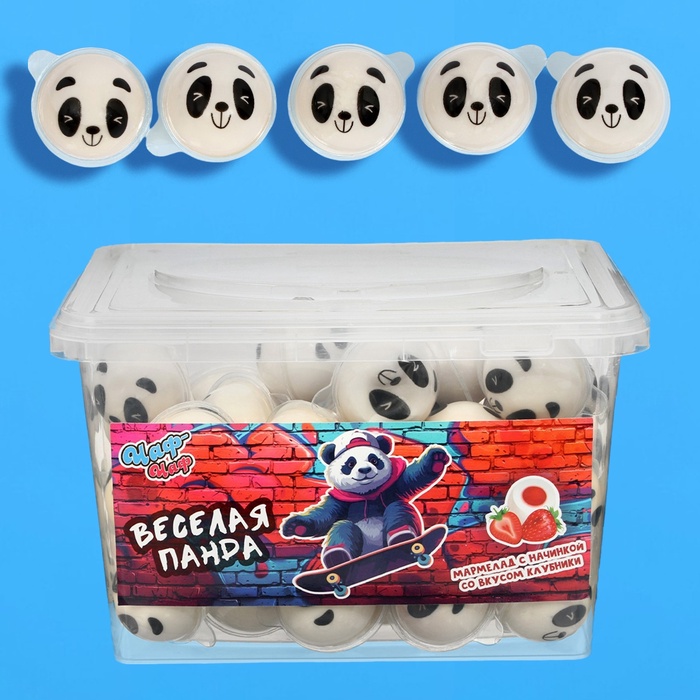 Жевательный мармелад с начинкой "Весёлая Панда" — это яркое и веселое угощение, которое подарит вам море радости и отличный настрой! Веселые пандочки всегда готовы поднять вам настроение и сделать каждый момент особенным.