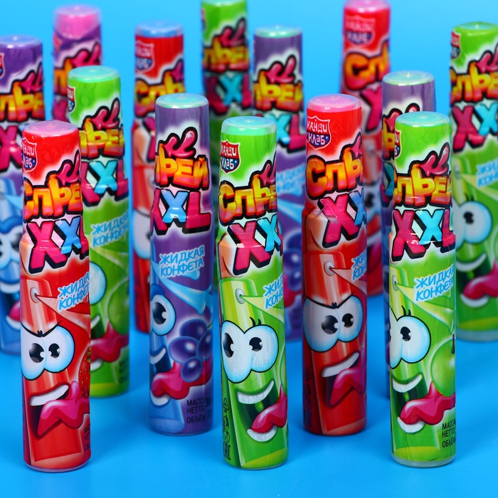 Оригинальный сладкий подарок для мальчиков и девочек! Жидкая конфета Спрей XXL» с насыщенным вкусом. Конфеты в индивидуальной упаковке с ярким дизайном, которые можно взять с собой на прогулку, в поездку, путешествие, в детский сад или школу. Такое угощение придется по вкусу любому сладкоежке! Прекрасный подарок детям на любой праздник.
