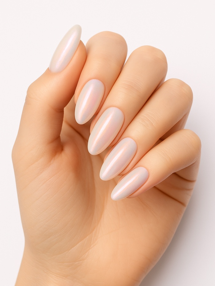 Воздушный и сияющий маникюр с персиковой жидкой втиркой!