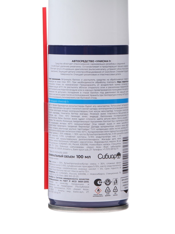 Унисма-1 — это незаменимое средство для отвинчивания заржавевших резьбовых соединений, способствующее удалению ржавчины, останавливающее и предотвращающее процесс коррозии. Средство облегчит запуск отсыревших двигателей, защитит детали электрооборудования от окисления, смажет трущиеся поверхности.