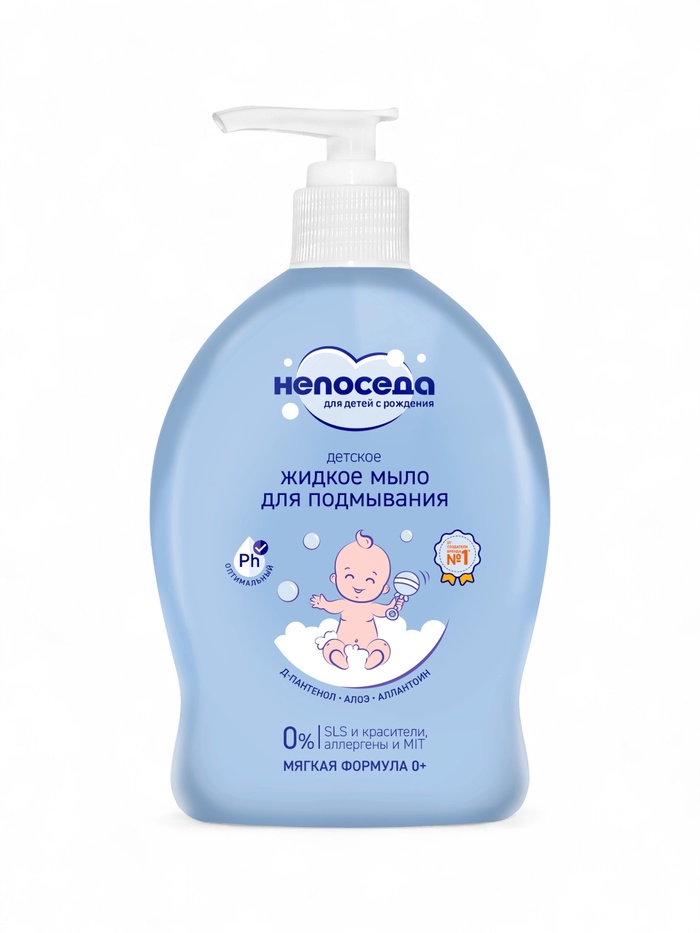 Жидкое мыло с алоэ и аллантоином Непоседа создано специально для ухода за нежной кожей новорожденных.