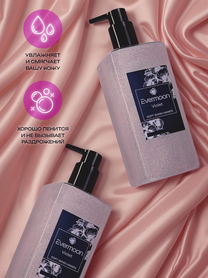 Благодаря уникальному сочетанию экстракта фиалки и мельчайших блёсток, мыло мягко очищает кожу, не пересушивая её, а также увлажняет и питает эпидермис.