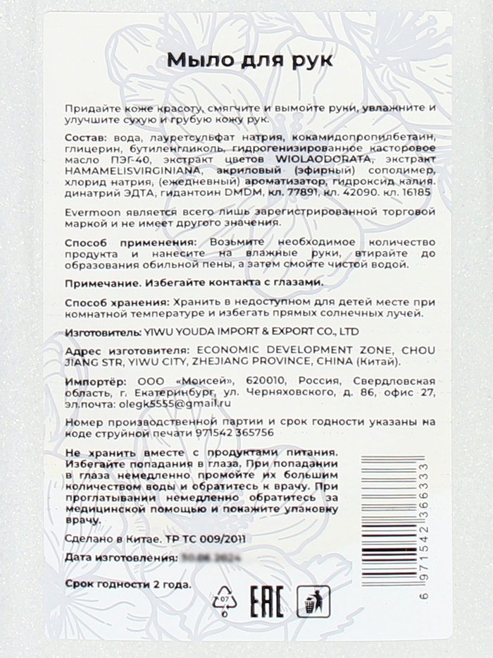 Жидкое мыло «Гиацинт» с шиммером — это изысканное средство для ухода за кожей, созданное с любовью к каждой детали. Нежное и ароматное, оно станет вашим верным спутником в ежедневных ритуалах чистоты и заботы о себе.